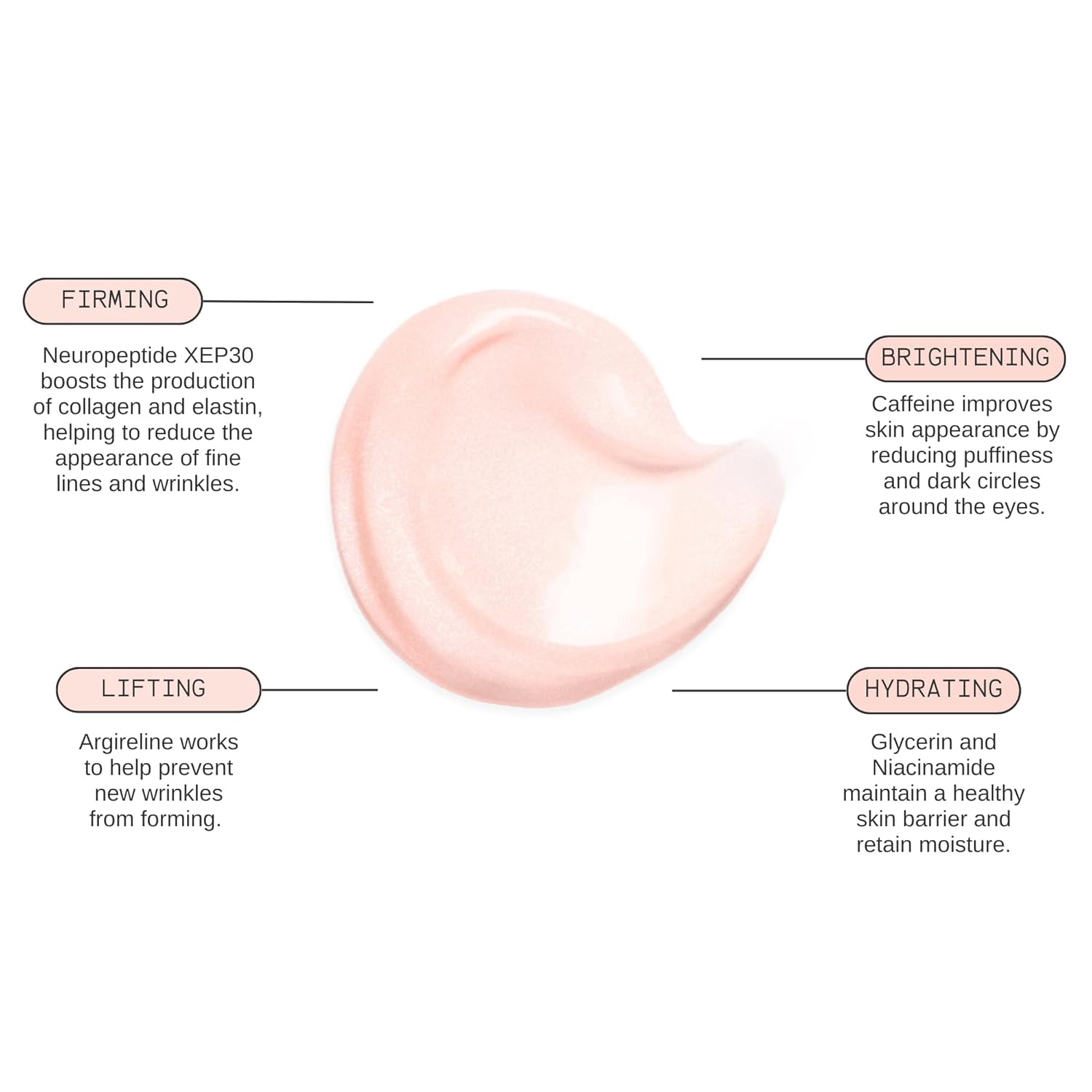 - Key Ingredients: X50 is an exclusive delivery system of two neuro-peptides that target skin cells to relax lines and wrinkles. Argireline (Acetyl hexapeptide-3) is a synthetic neuropeptide known for its wrinkle-relaxing effects. Whey Protein stimulates collagen production and retains moisture. Niacinamide (Vitamin B3) improves elasticity, enhances barrier function, and evens skin tone. Magnolia, Boswellia, and White Birch extracts are collagen-boosting. Creatine promotes cell energy and collagen production. Proprietary Polymers & Micro Spheres instantly even skin tone and reduce wrinkles.