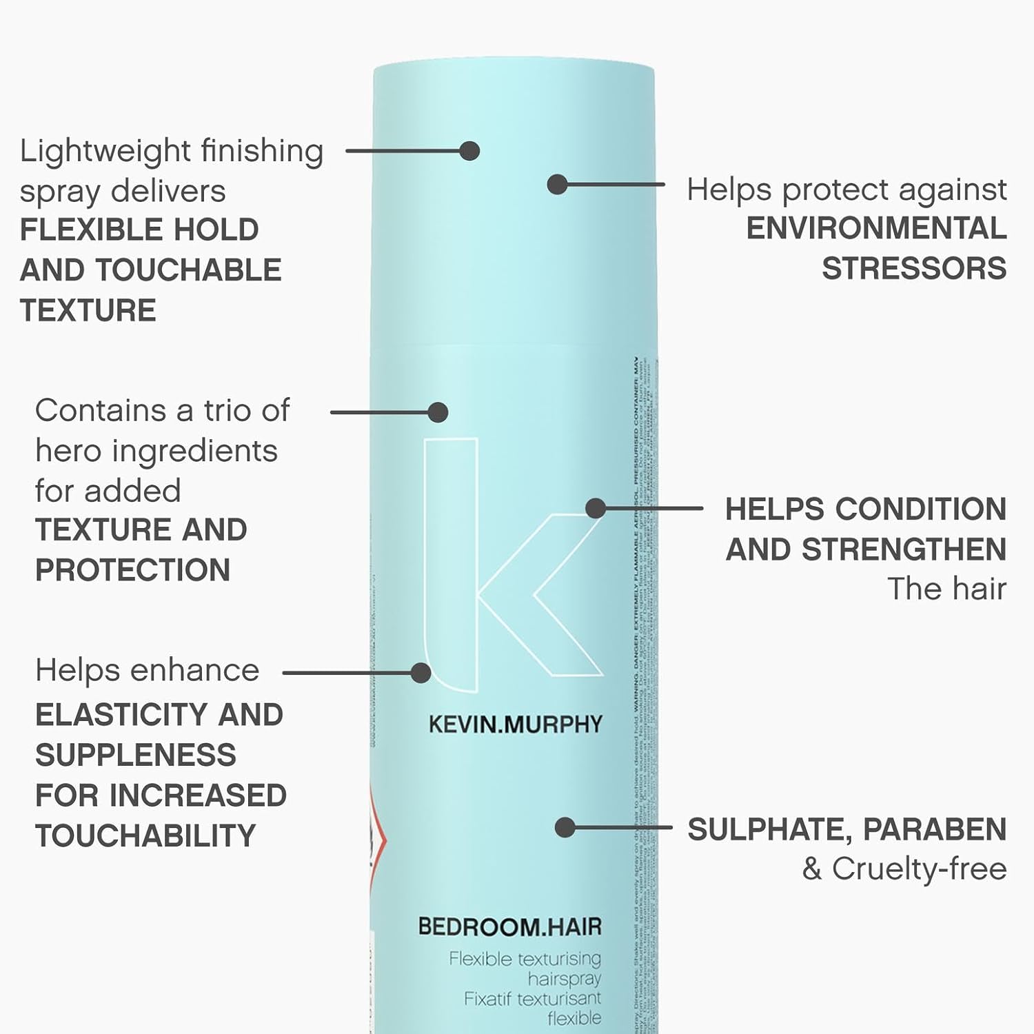 KEVIN.MURPHY BEDROOM.HAIR - Flexible Texturising Hair Spray - For All Hair Types - Hair Care for Effortless Bedroom Hair - With Ginger Root Extract - 235 mL / 7.9 fl oz