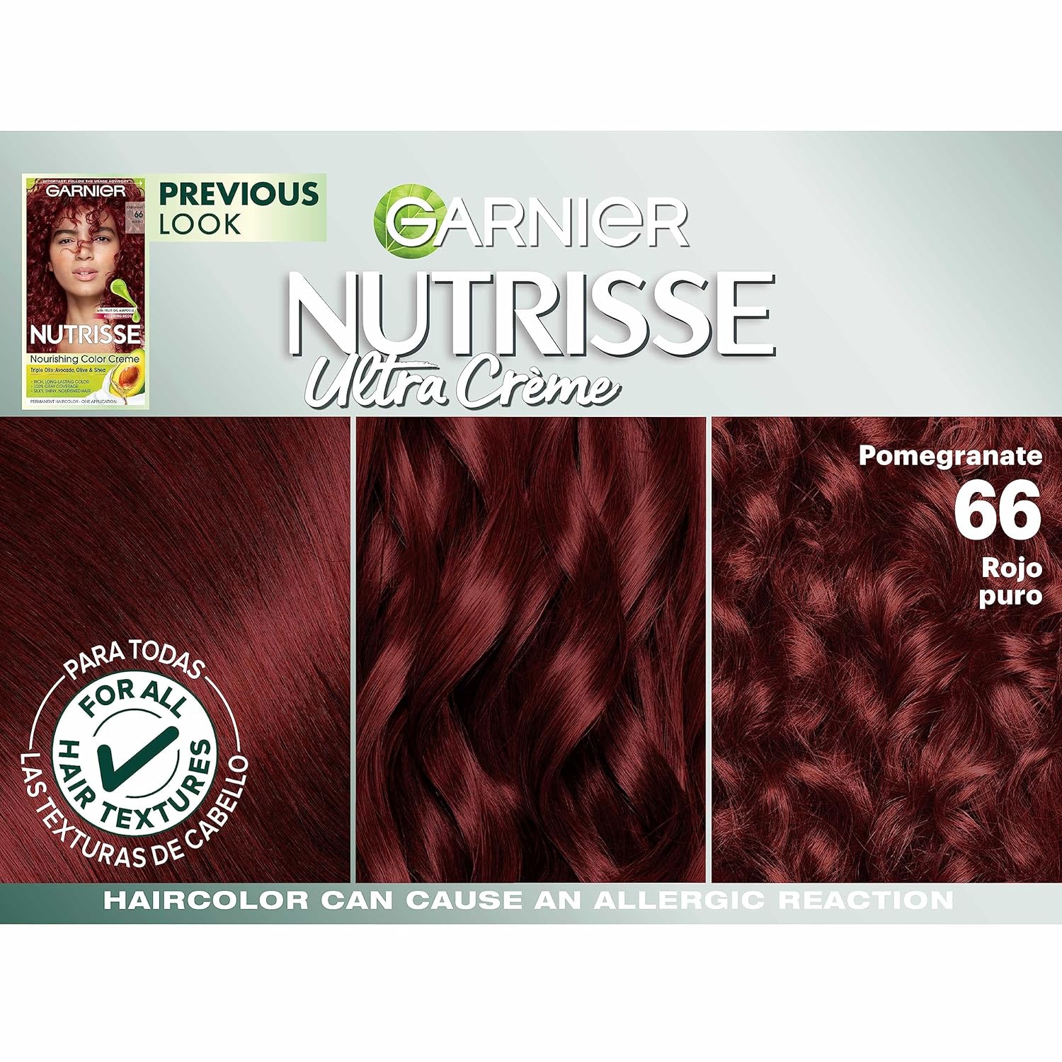 Garnier Hair Color Nutrisse Nourishing Creme, 66 True Red (Pomegranate) Permanent Hair Dye, 2 Count (Packaging May Vary)