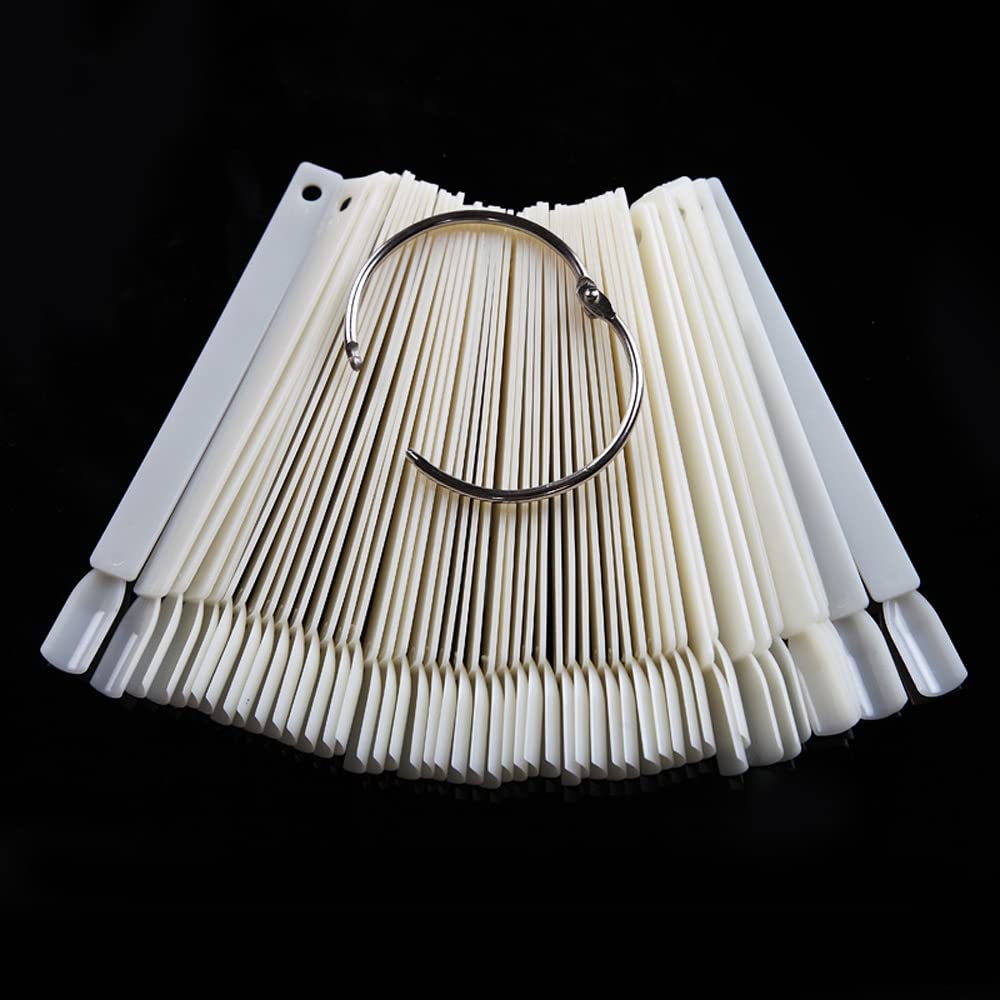 JASSINS 50 Pcs Nail Swatch Sticks with Ring, Fan-shaped Nail Art Polish Practice Display Tips Nail Sample Sticks, Nail Practice Color Display Polish Board