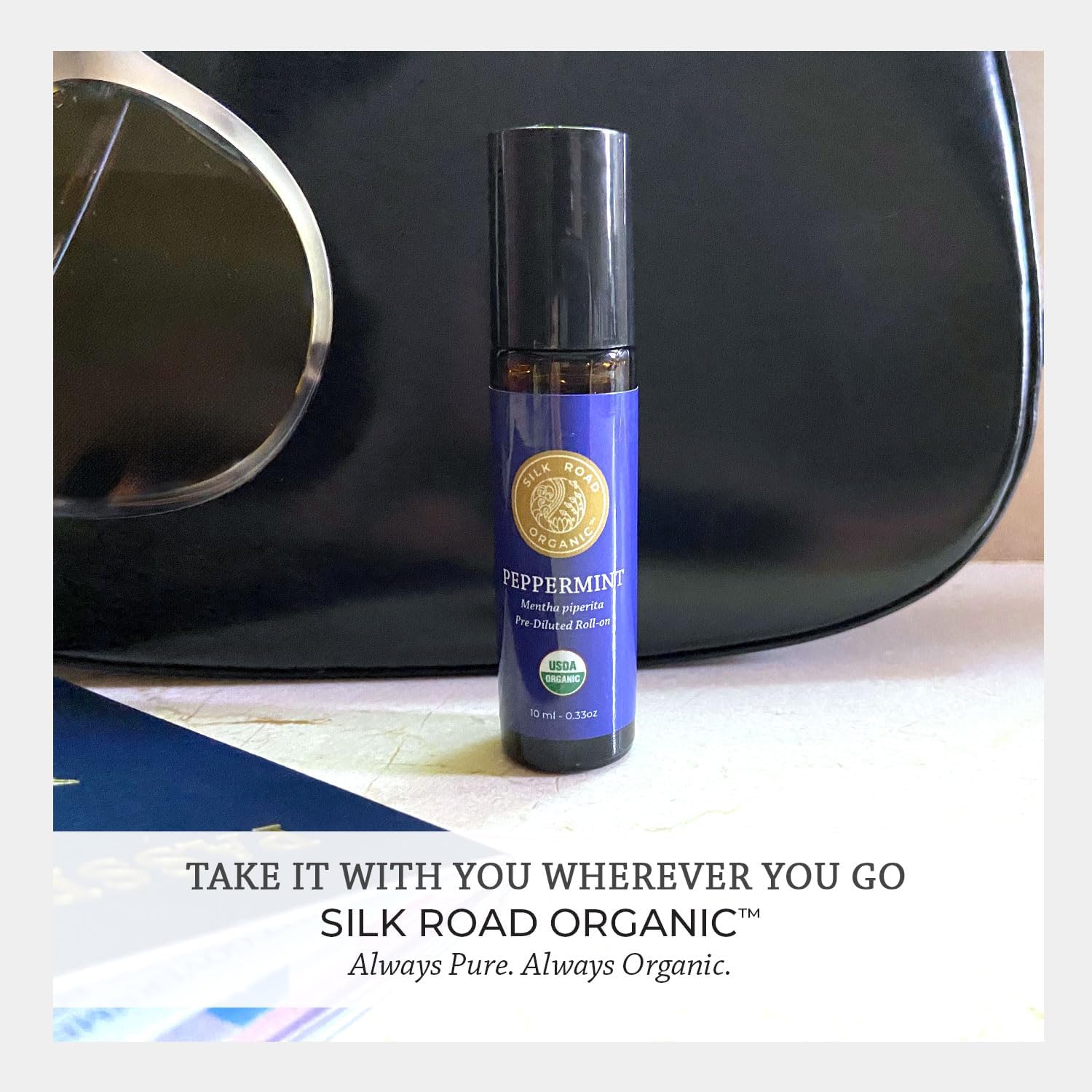 Silk Road Organic Peppermint Essential Oil Roll On, Mentha Piperita, 100% Pure USDA Certified Aromatherapy - Headache, Morning Sickness, Nausea, Energy & Hair - 10 ml Roller