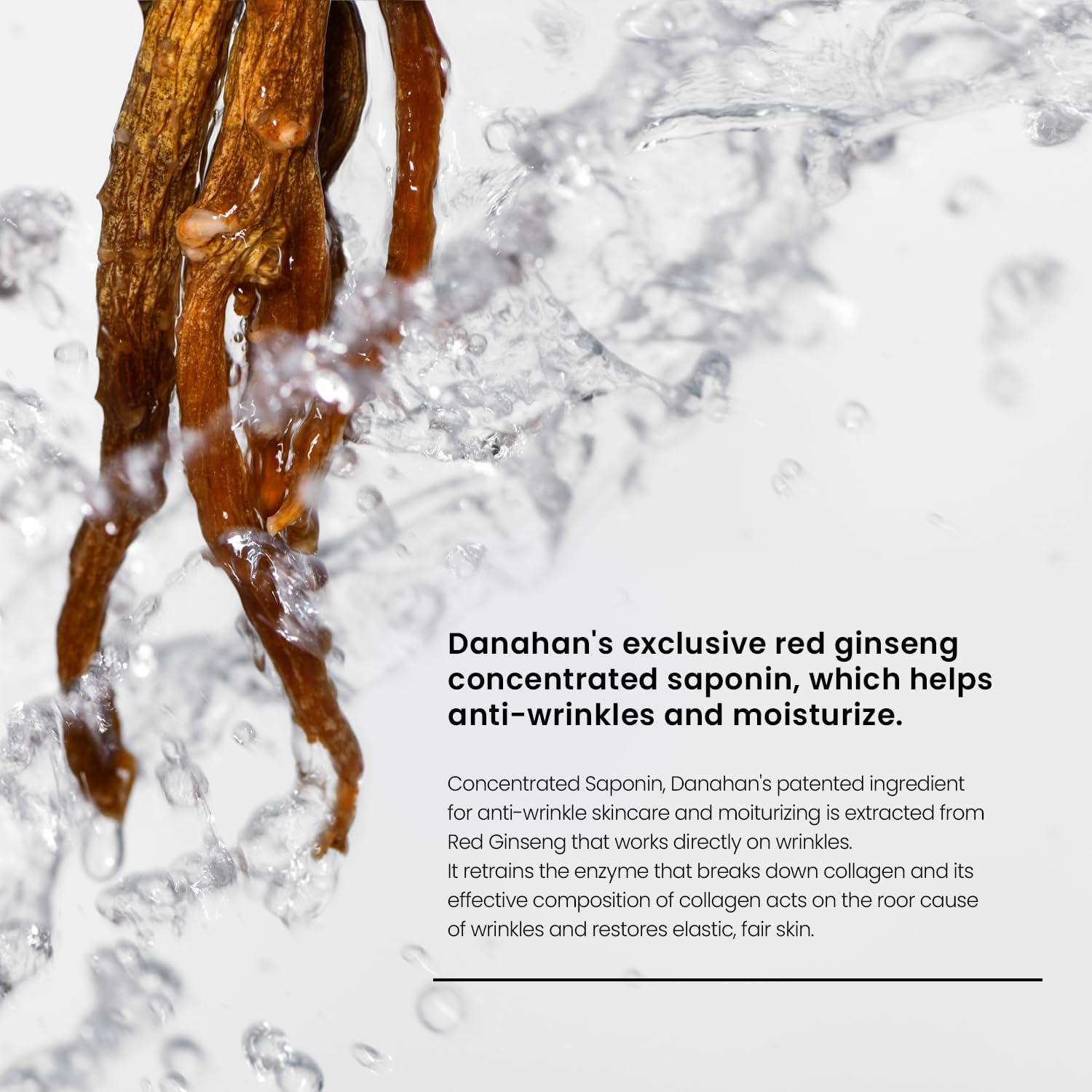 - Concentrated Saponin, Danahan's patented ingredient for anti-wrinkle skincare is extracted from Red Ginseng Saponin that works directly on wrinkles.