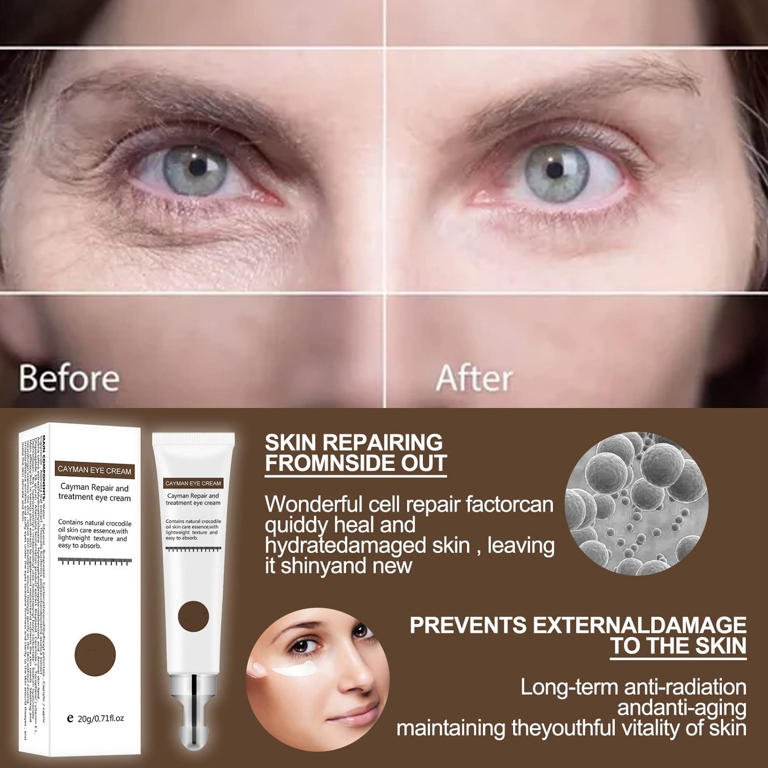 - Anti-aging Eye Cream : Lock water moisturizing ingredients,unique solution dry eyes, a sagging in water,dark dumb light. Instantly supply your eyes with aid for lifting and tightening effecting the area around the eyes.