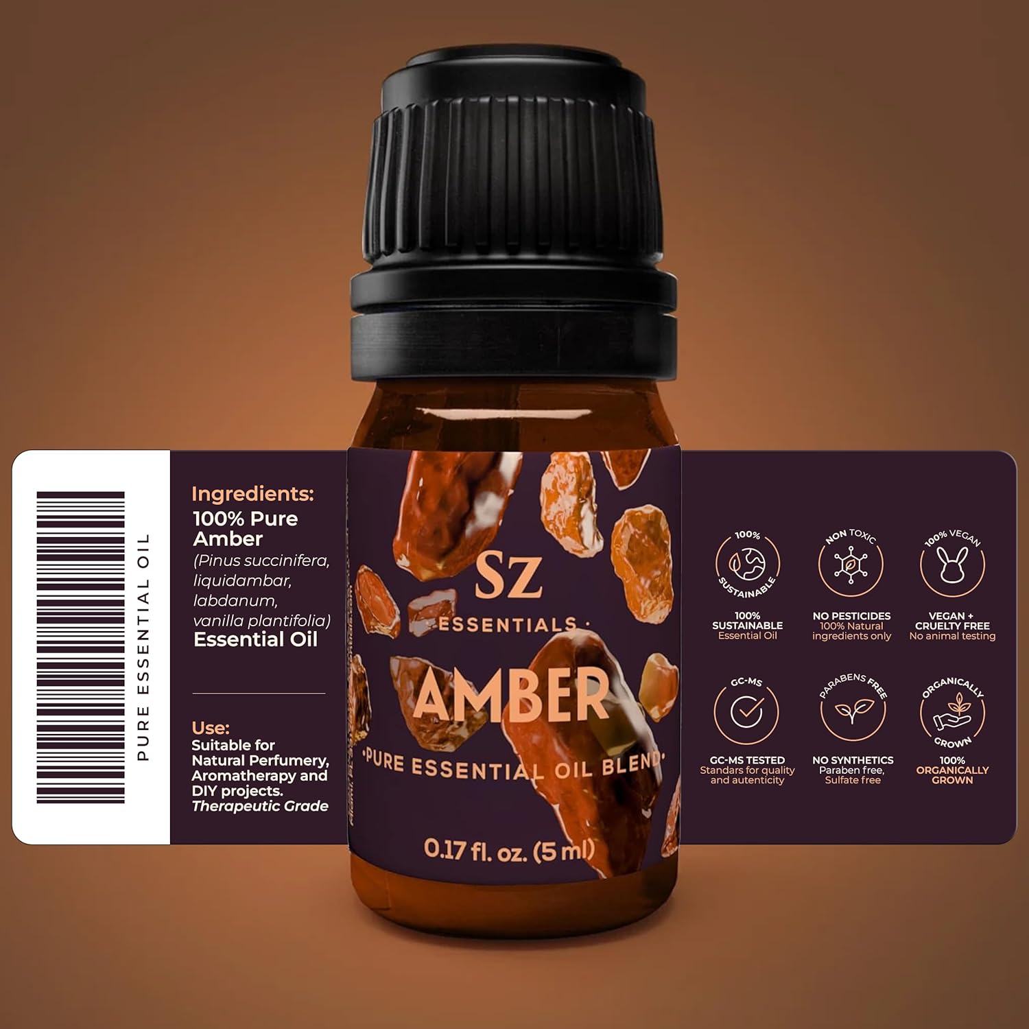 - Versatile Usage: Discover the versatility of SZ Essentials Amber Essential Oil. An experience that rejuvenates your skin and lifts your spirit. Use it as a natural perfume, and add it to homemade candles, soaps, lotions, and more. Its warm, woody scent is an ideal addition to your seasonal aromatherapy routine, especially during fall and winter.