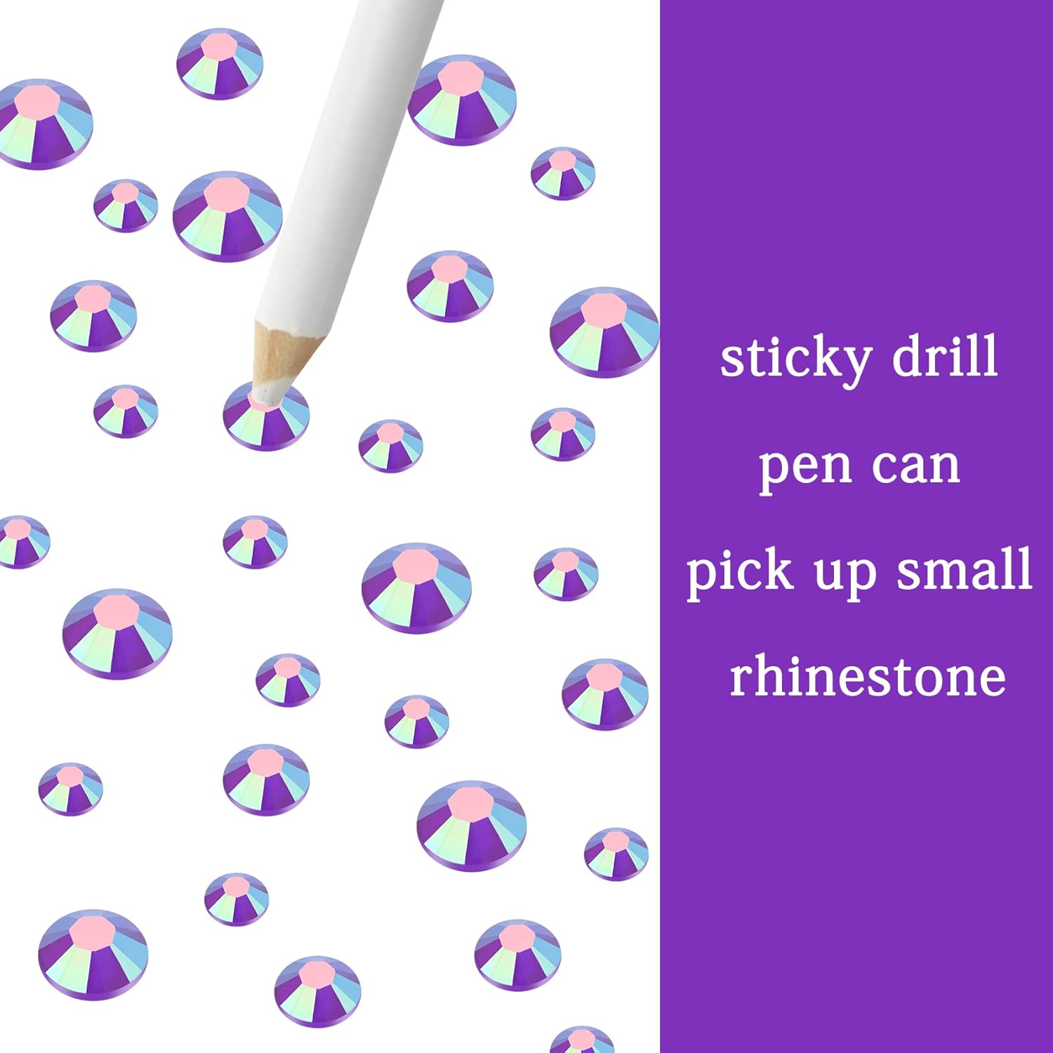 - 3 Sizes Rhinestones Set with Pick Up Pen: 2050 pcs per box. Round flat backs &Non Hotfix, SS10 (3mm) 1100PCS, SS16 (4mm) 600PCS / SS20(5mm) 350PCS.