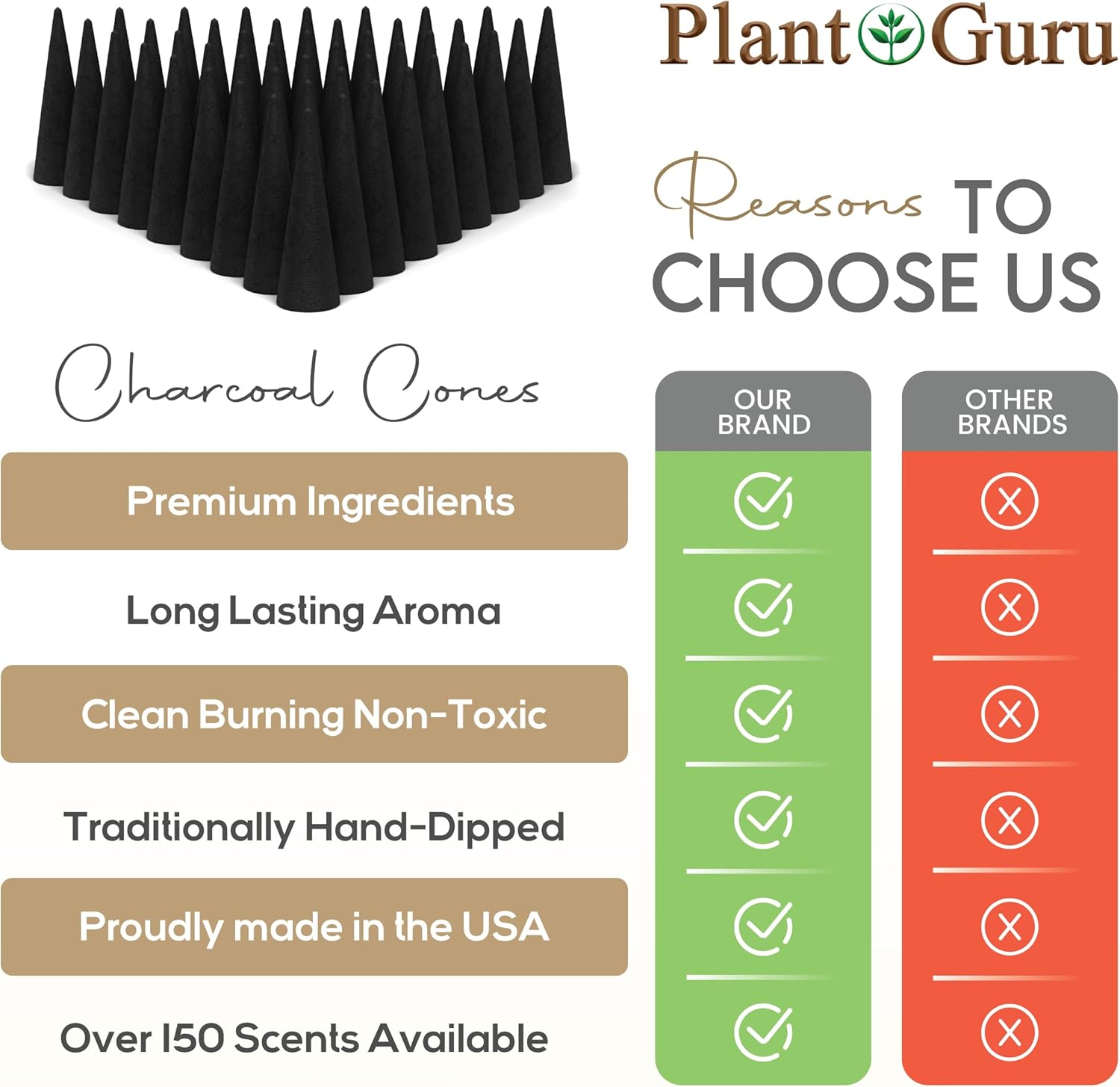 - β MADE IN THE USA - 60 Cones Per Pack - Hand dipped daily using premium grade fragrance Oils. Each cone is 2'' inches long and made of high-quality charcoal. Hand dipped for 48 hours. Burns time is approximately 25 to 30 minutes.