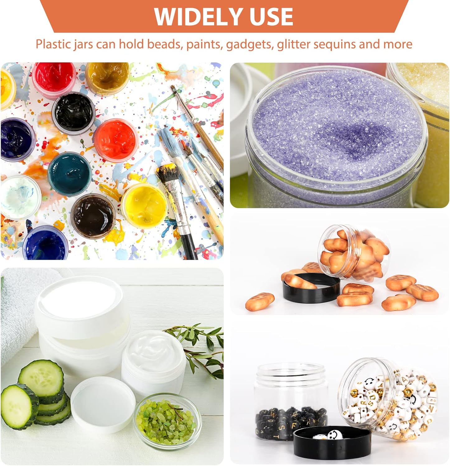 - Great for storing spices, condiments, butters, candy, body lotion, moisturizing creams, party favors, slime, beads, rhinestones, sequins, nail crystals and any other craft items