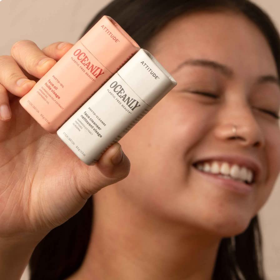 ATTITUDE Oceanly Radiant Skin Daily Facial Care Routine Box Set, EWG Verified, Plastic-free, Plant and Mineral-Based Ingredients, Vegan and Cruelty-free, PHYTO GLOW, Set of 4 Travel Size Bars