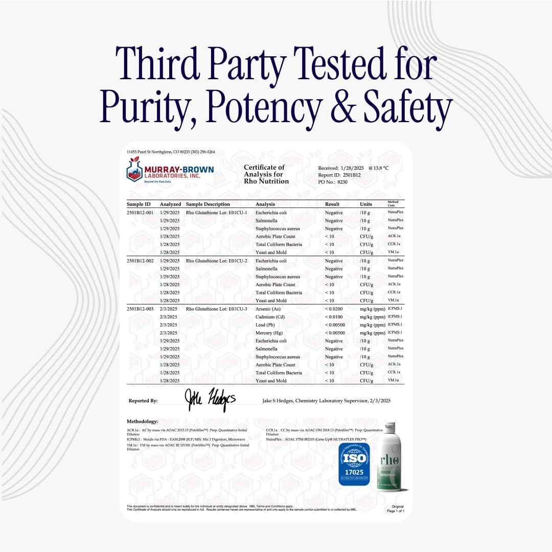 - CONVENIENT LIQUID FORM: Easily integrate Rho Liposomal Glutathione into your daily routine with 1 serving (4 ml—equivalent to slightly less than one teaspoon) per day. Enjoy the natural Lime Citrus flavor by taking it straight or mixing it into cold water, juice, smoothie, or shake. This liquid formulation offers 30 servings per bottle. It's sugar free, Keto, non-GMO, gluten, dairy & soy-free and vegan. Contains no fillers, binders, or artificial coloring. Manufactured in the USA in a cGMP facility and third-party tested.