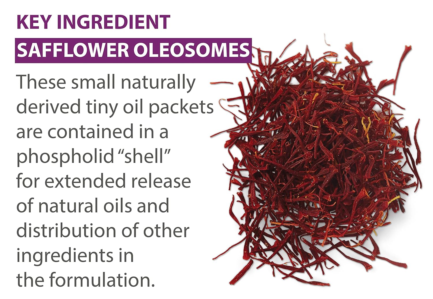 - Moisturizes with a blend of natural emollients including safflower oleosomes and carrageenan
