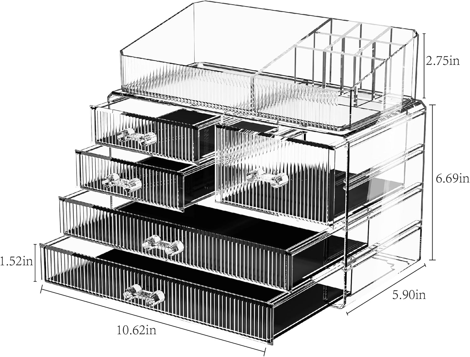 - With ample storage space, this make up organizers and storage is perfect for storing all your favorite makeup products, jewelry, and other accessories. The bathroom organizer features several compartments and drawers that are perfect for storing eyeshadows, lipsticks, brushes, and other makeup products.