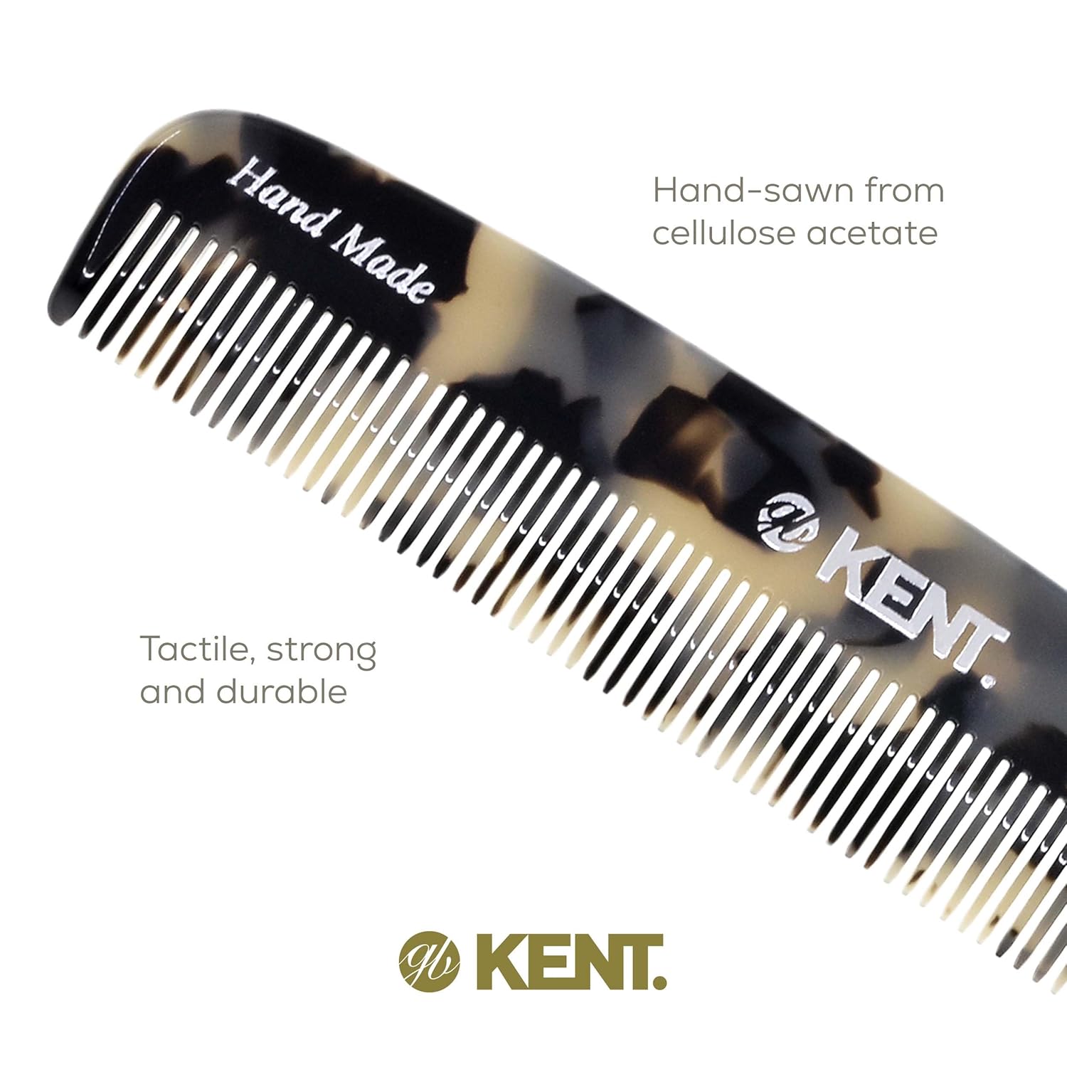 - GENTLE GLIDING COMB: The hand sawn combs are the nature of Kentβs Success. Cellulose acetate is a tactile, yet flexible and strong matrial. They glide effortlessly through hair without scratching or damaging the hair or scalp. Kent Combs have rounded teeth which ensure smooth and comfortable action.