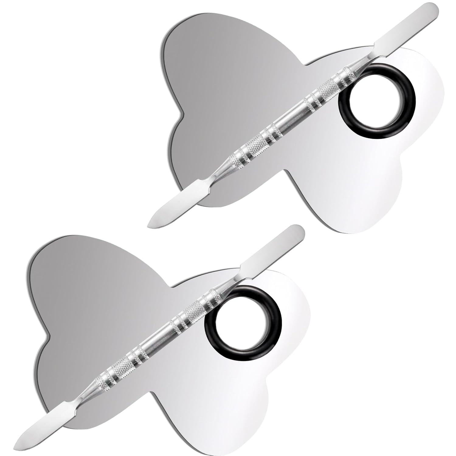 2 Pcs Stainless Makeup Mixing Palette,Tool for Mixing Foundation Nail-Art,Palette with A Stick,Storage Bag,Beauty Salon Color Cream Mixing Palette,Makeup Artist,Makeup Enthusiast (Butterfly Shaped)