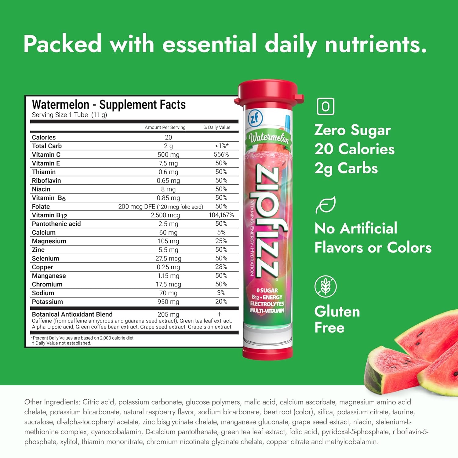 - Juicy Watermelon Flavor β Delight in the sweet and refreshing taste of juicy watermelon that will quench your thirst and energize your day. Simply add Zipfizz powder to 16-20 ounces of water or other non-carbonated beverage, shake, and enjoy!