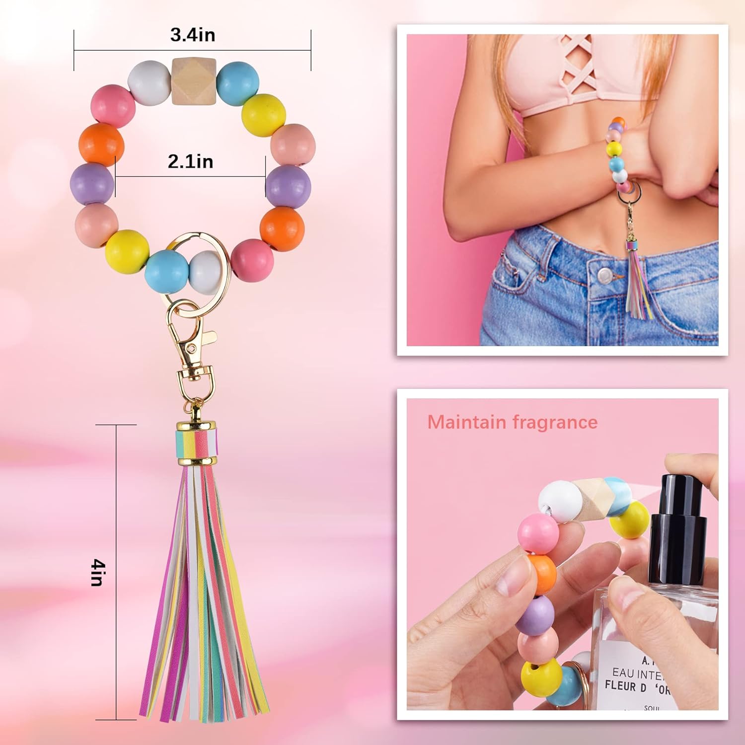 - 【Wristlet Keychain Bracelet】Our makeup organizer bag comes with a detachable wristlet keychain bracelet that features 14 silicone food-grade beads and one natural wooden bead. The high-quality colorful leather tassel adds a pop of color to your bag and can be used to decorate your bags. The keychain bracelet is stretchy, sturdy, and comfortable, making it perfect for most wrist sizes.