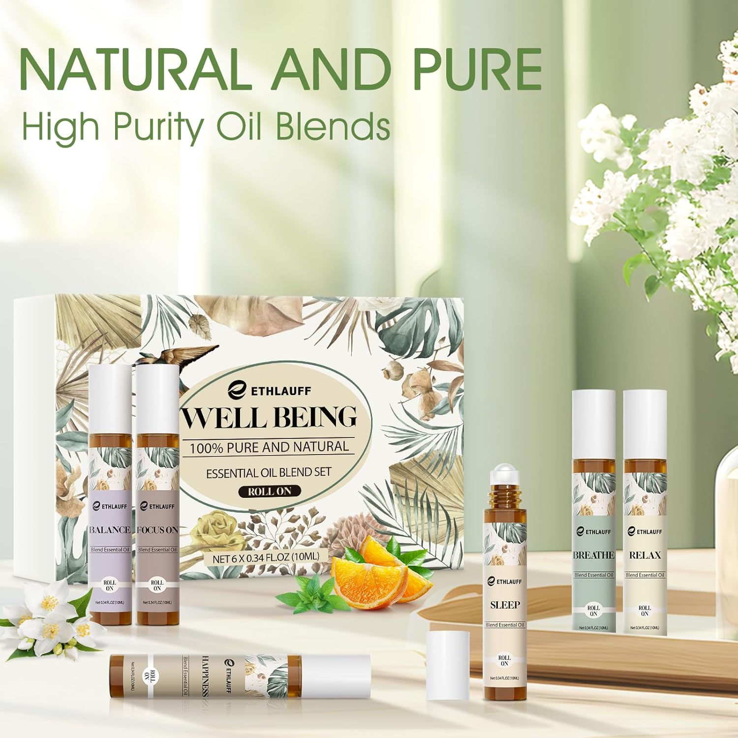 - Skin-friendly essential oils: Our roller ball essential oil is very skin-friendly and has good fluidity. Just rub it gently on your wrist to quickly spread the essential oil. 100% Pure Derivatives From Plant Sources.Contains natural carrier oils. Apply to wrists, chest, temples, palms, soles of feet and behind ears.FOR EXTERNAL USE ONLY ๏ผ