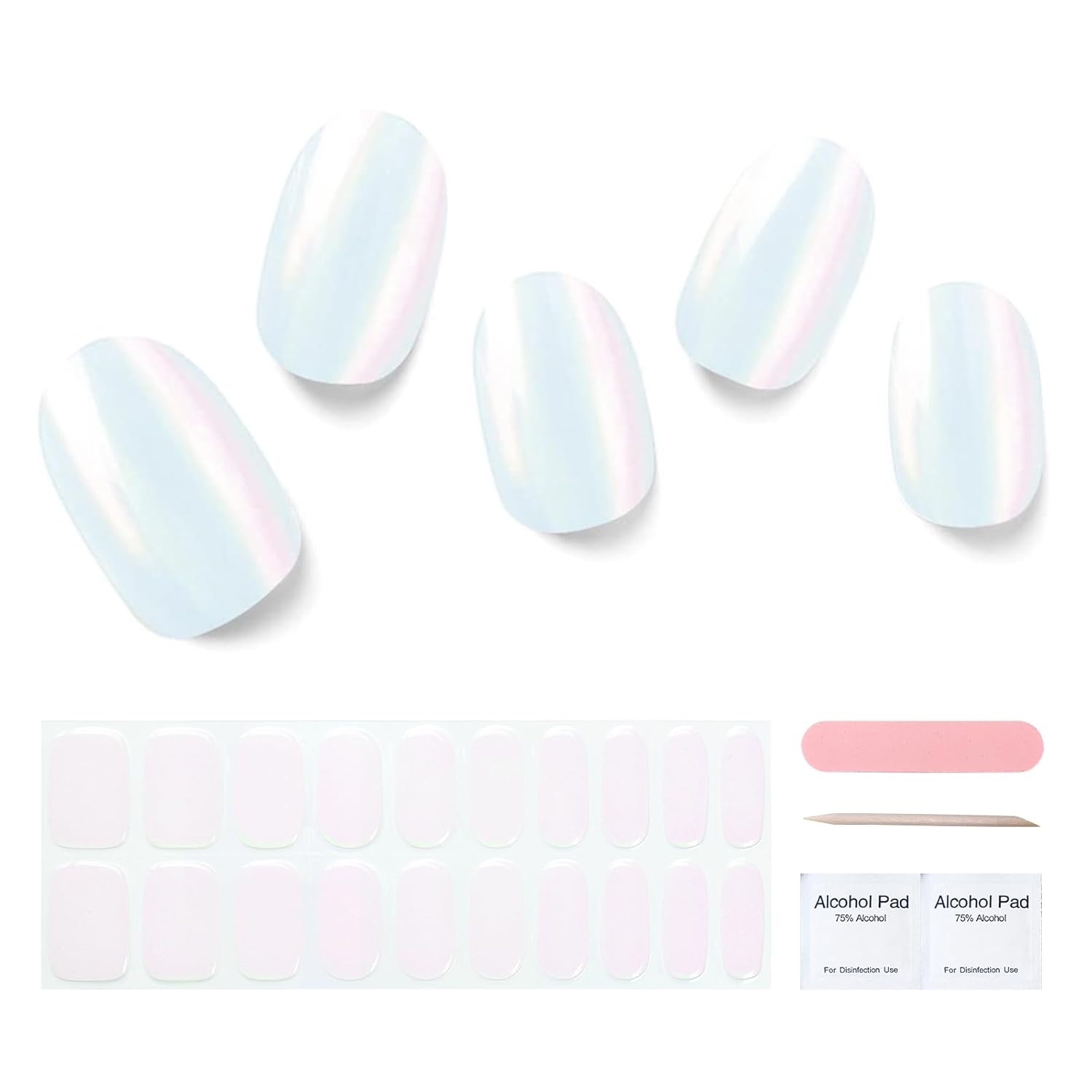 Semi Cured Gel Nail Strips, 20 pcs Gel Nail Stikers, Gel Nail Wraps Semi Cured, Salon-Quality, 2 Weeks Long Lasting Shell Aurora