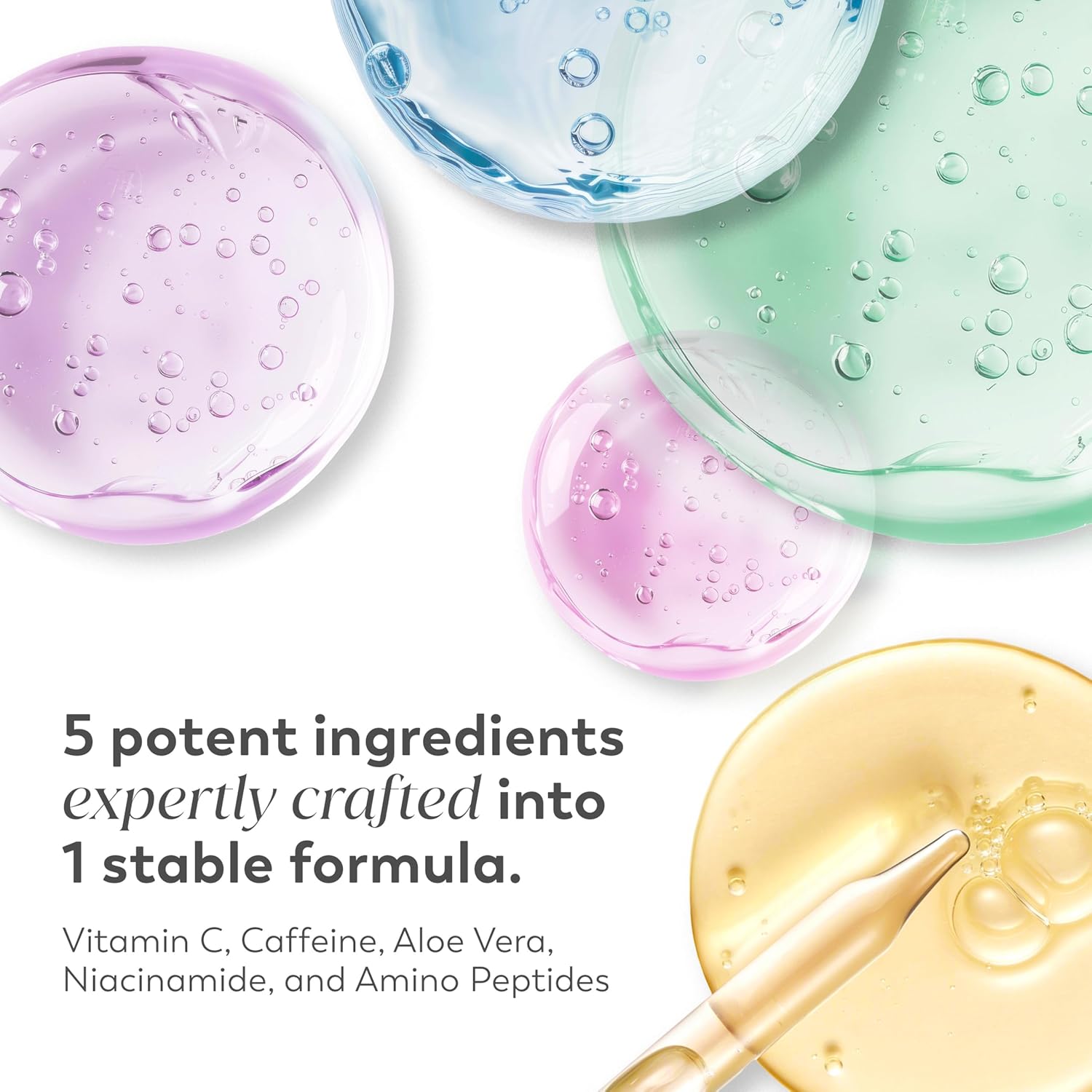 - 5 SKINCARE INGREDIENTS: Infused with Vitamin C, Caffeine, Aloe Vera, Niacinamide, and Amino Peptide, this expertly crafted eye serum nourishes the delicate under-eye area.