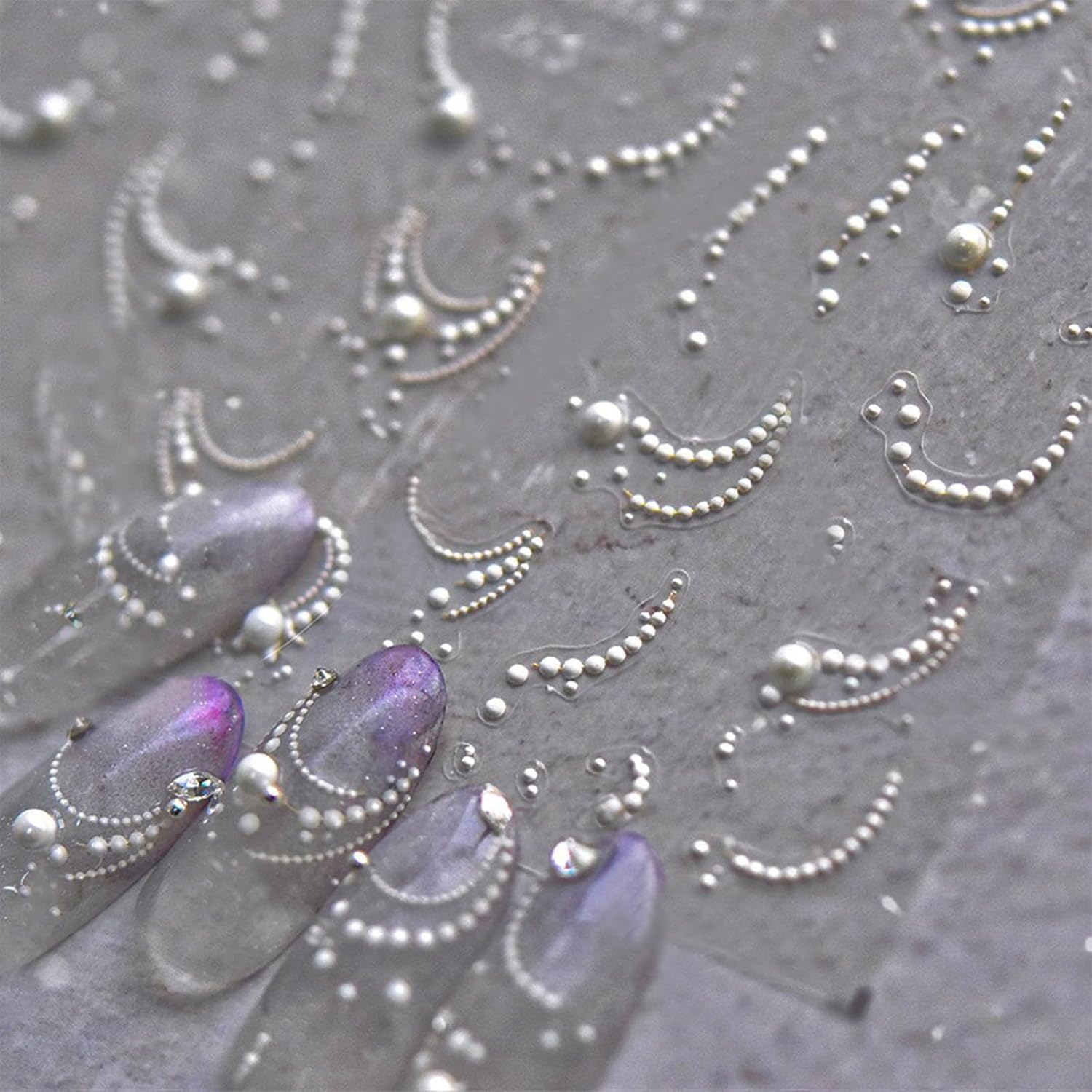 - Easy to Use: White pearls nail stickers decal are self-adhesive, completing fashion-cool nail art design in just a few seconds. If you want to keep it for a long time, you need to apply nail polish on the surface for reinforcement