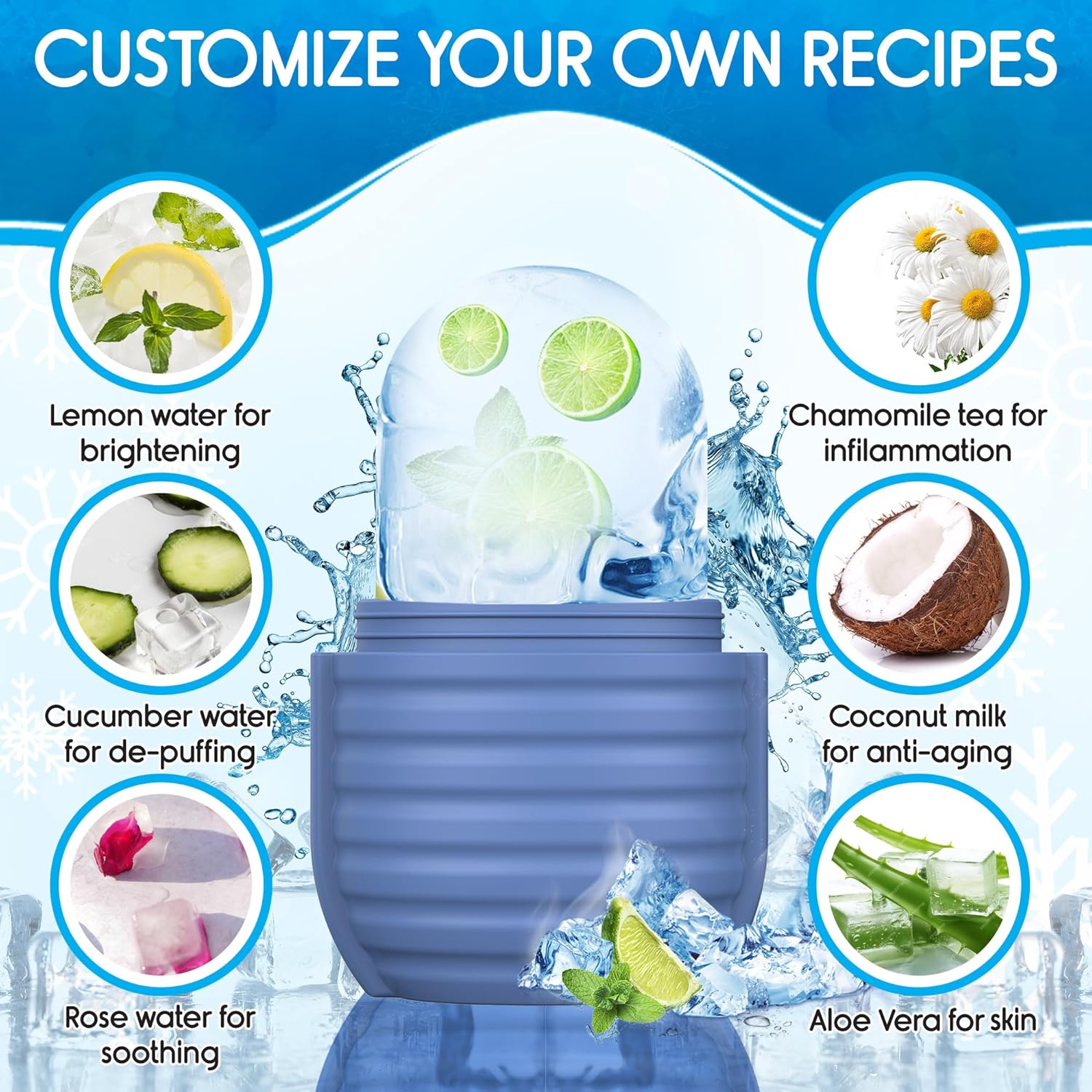 - Customize Preferences - Facial ice roller can enhance the skin care effect as per your creativity and customized formula according to your specific skin needs, such as coconut for improving skin. Even you can use a juicer to squeeze them into juice, then add water, essential oils, and roses to the ice tray.