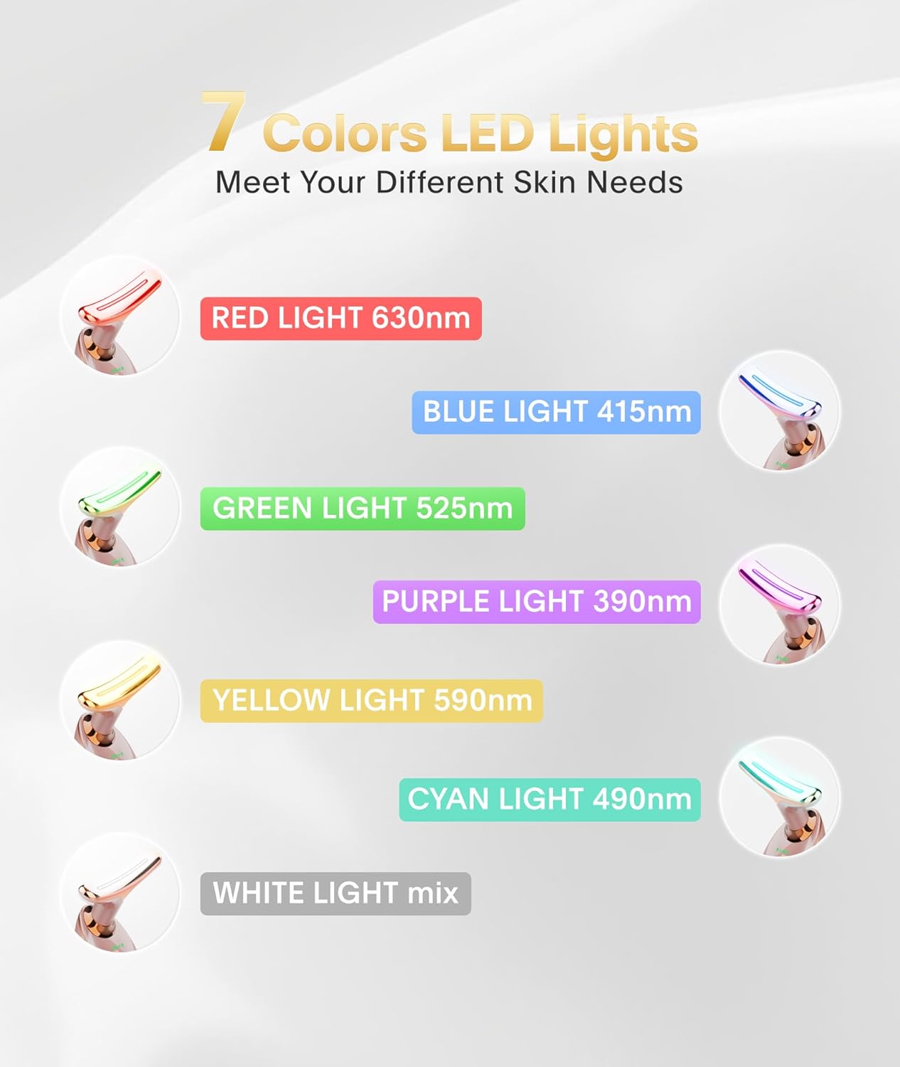 - How to Use: It is recommended to use it once or twice a day for five to ten minutes each. Cleanse the face and apply some skincare products before use. Remove the cap, long press the button to power on and select the mode you need
