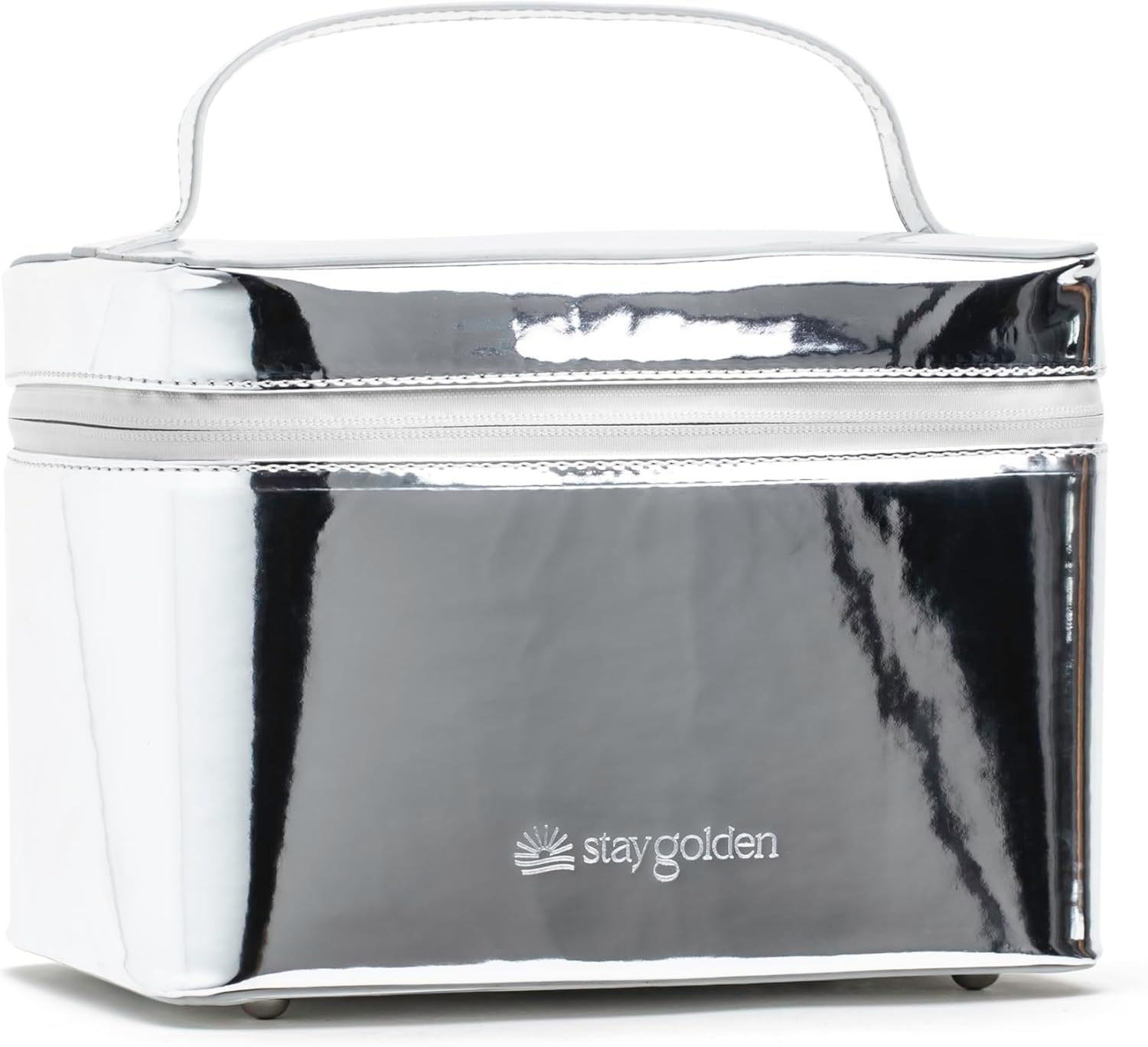 Large Insulated Metallic Silver Travel Makeup Case - Waterproof Vegan Leather Beauty Travel Skincare Bag - Heat-Resistant Zippered Designer Makeup Bag Shields Cosmetics from Melting, Freezing
