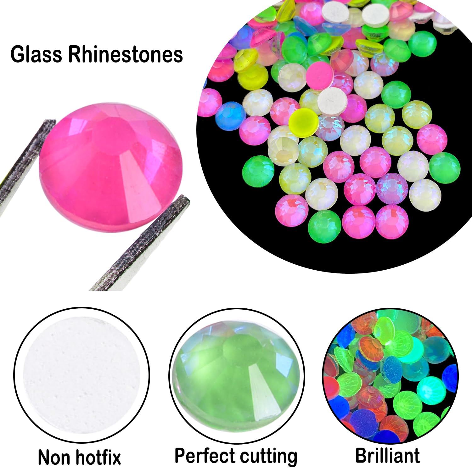 - Quality:These neon rhinestones are made of high-quality glass,prefect cuting,high cleanliness,super sparkling and glittering,these rhinestones offer a brilliant, sparkling finish that adds a touch of elegance.