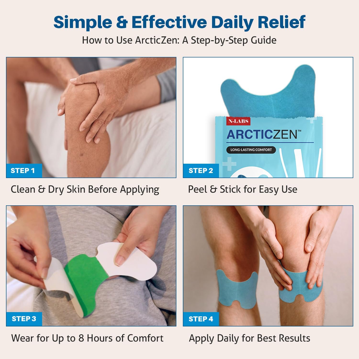- Quality-Made Knee Patches You Can Trust: Crafted with care, ArcticZen pain patches for knees are designed for consistent, high-quality support. Perfect for adults seeking knee pain relief products that align with an active, balanced daily routine.