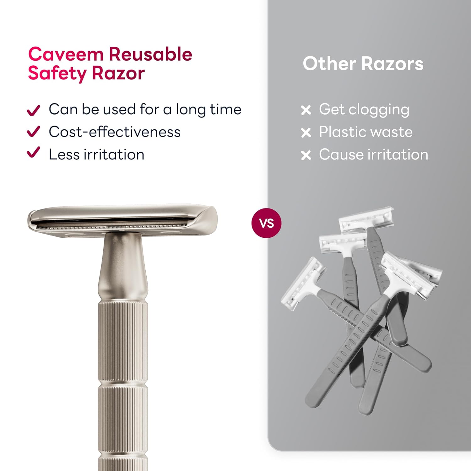 - DESIGN FOR BEGINNER :CAVEEM's reusable metal razor offers effortless, precise shaving with light glides. Its innovative handle design is non-slip crafted for comfortable grips, allowing smoother shaving at a 30-degree angle