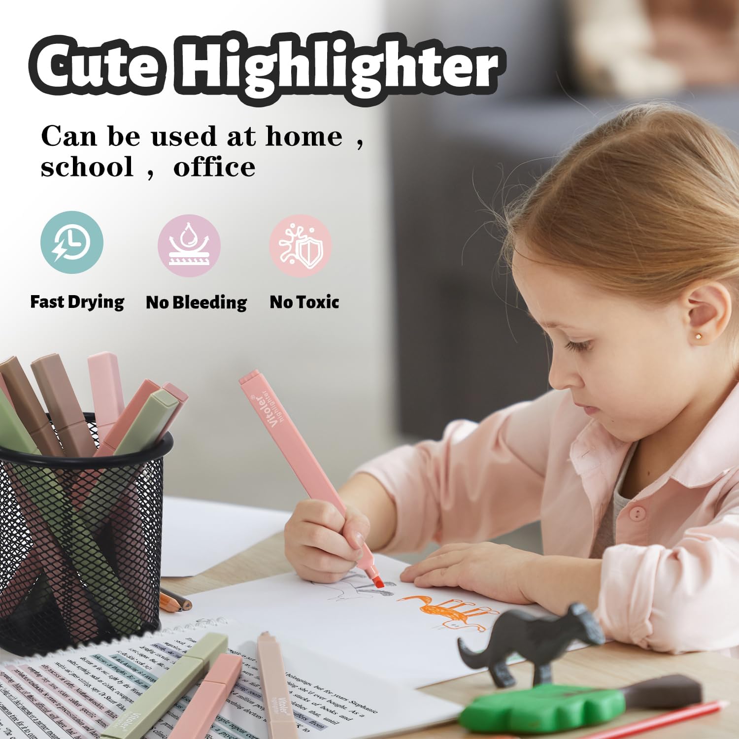 - Square Pen Holder:The square-shaped design keeps highlighters stable on desks, preventing them from rolling off and getting lost.