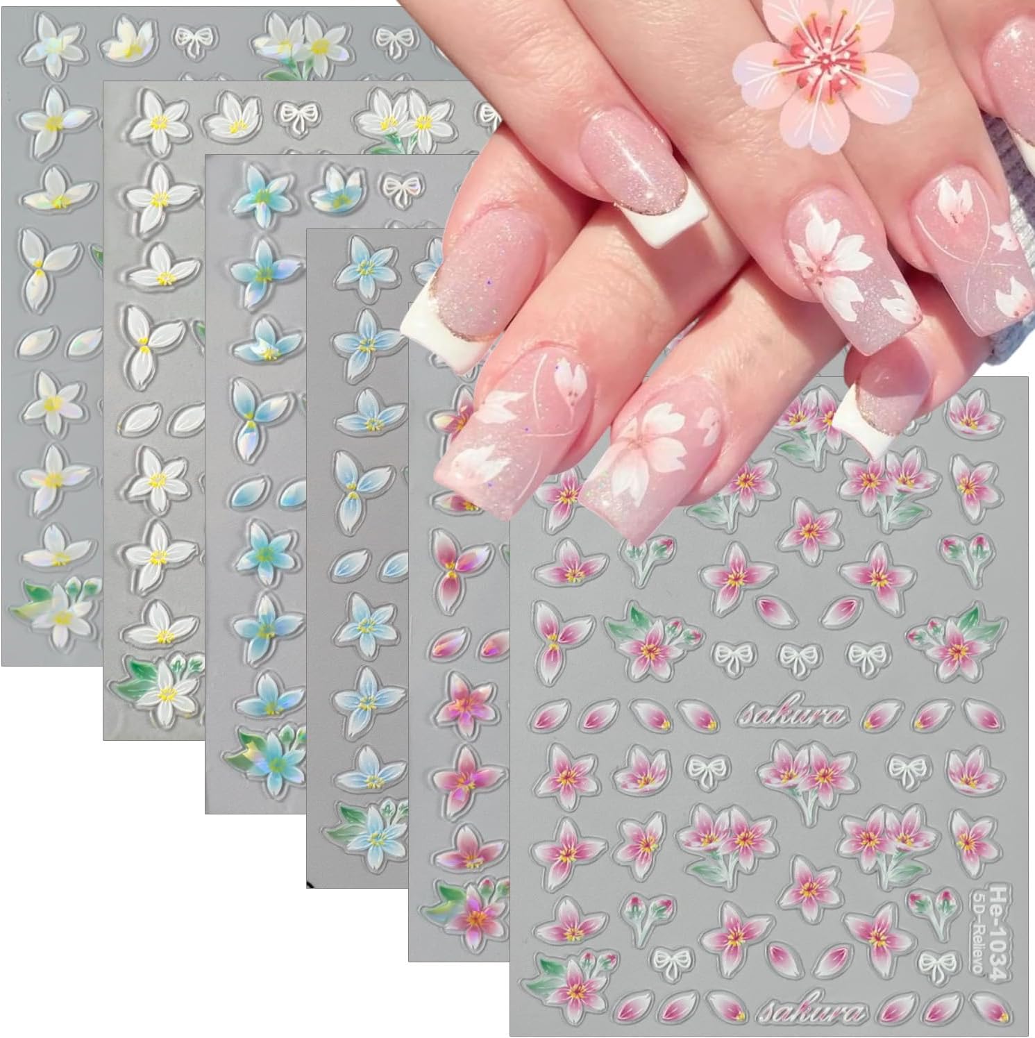- Flower Nail Stickers Kit: You will get 6 sheets 5d lily floral nail art stickers. Each pattern has a unique art design, attractive and creative, can add a strong holiday atmosphere.Perfect for women girls, DIY salon nail design, creates cute nail decorations.
