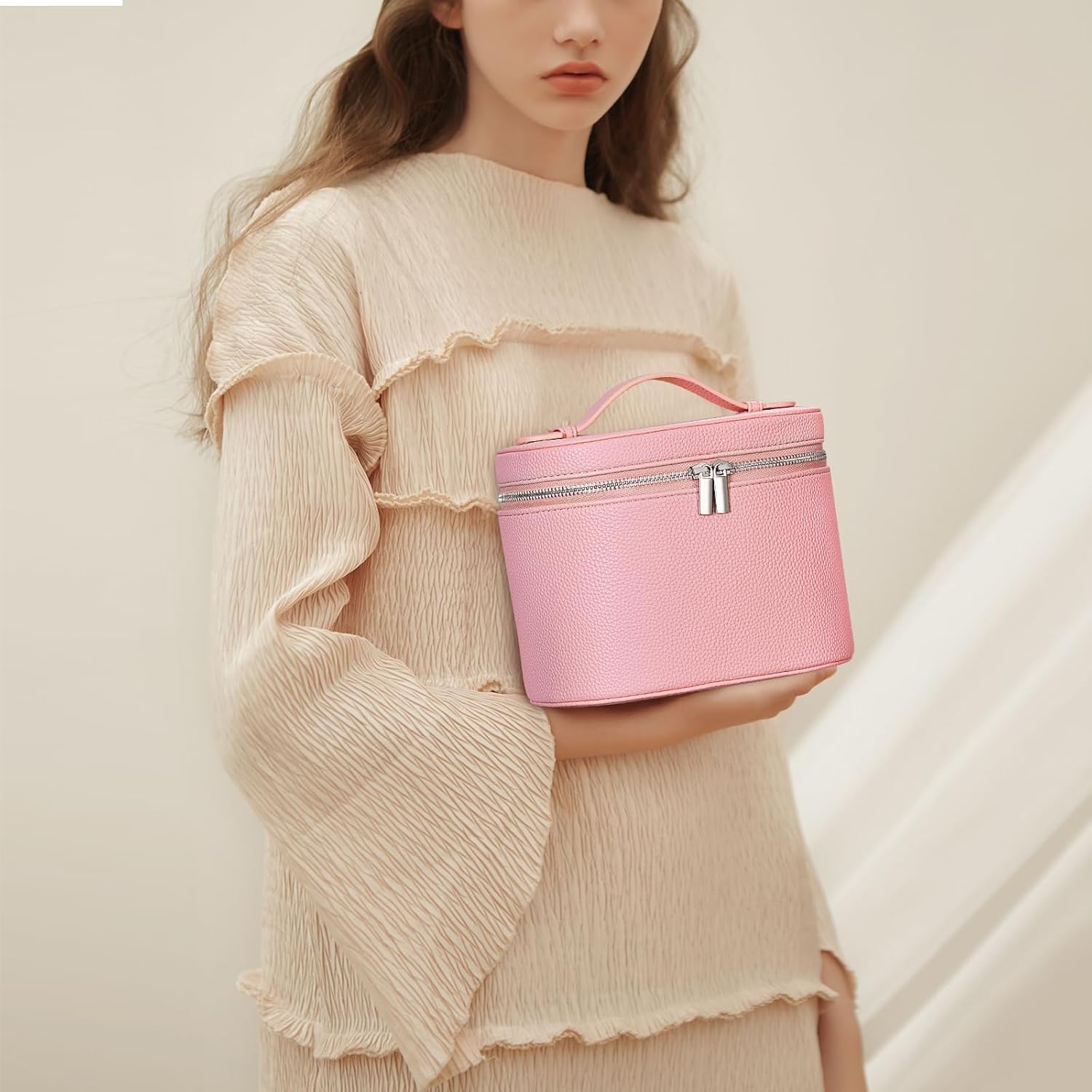 - Size and Capacity: Size: 7.87x5.91x5.51inch. This coametic bag can easily holds travel-size toiletries, skin-care products or other makeup items.