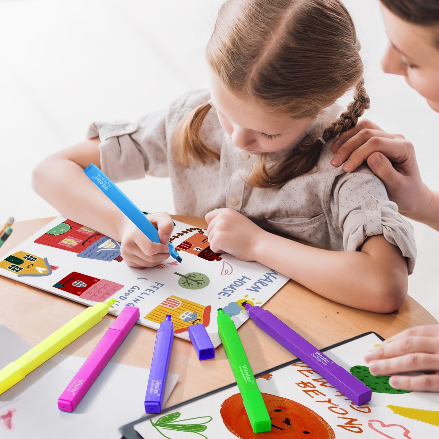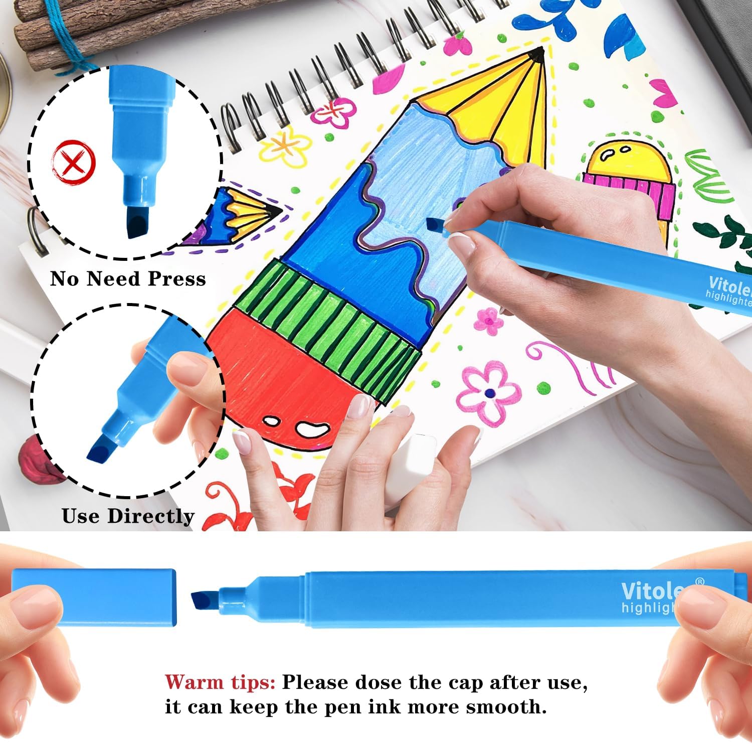 - Piochoo Highlighters Assorted Colors make your notes and papers pop with our soft and gentle highlighters! ,This package includes 12 highlighters in non-neon, assorted colors. Our highlighters are perfect for making your work and school life a little bit brighter. Journaling Cute School Supplies