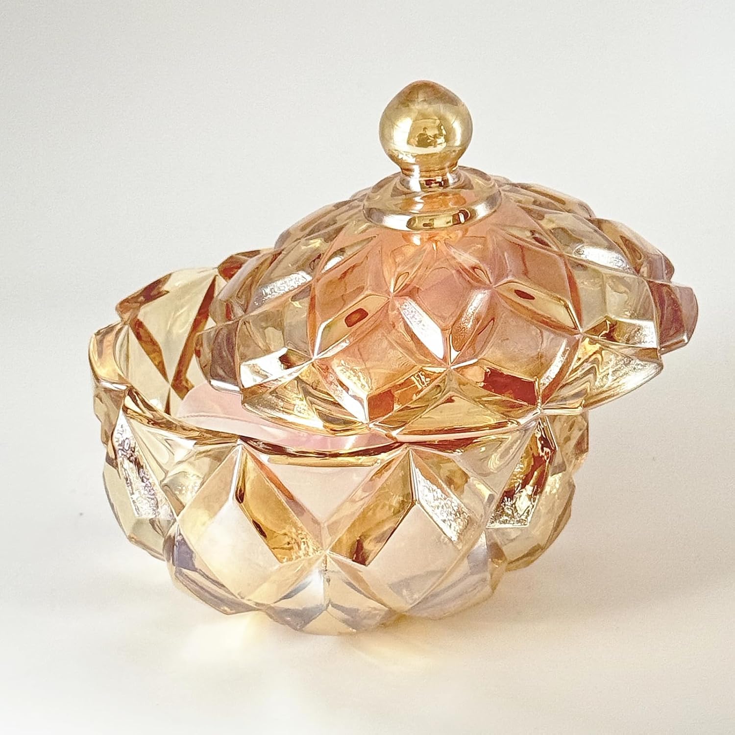- 【Unique Design】 This classic glass powder puff case has a delicate and lovely beautiful embossed pattern, which makes you look great, the powder puff case measures 3.94 inches long x 3.94 inches wide x 4.53 inches high. Designed for Dresser Storage and Decoration