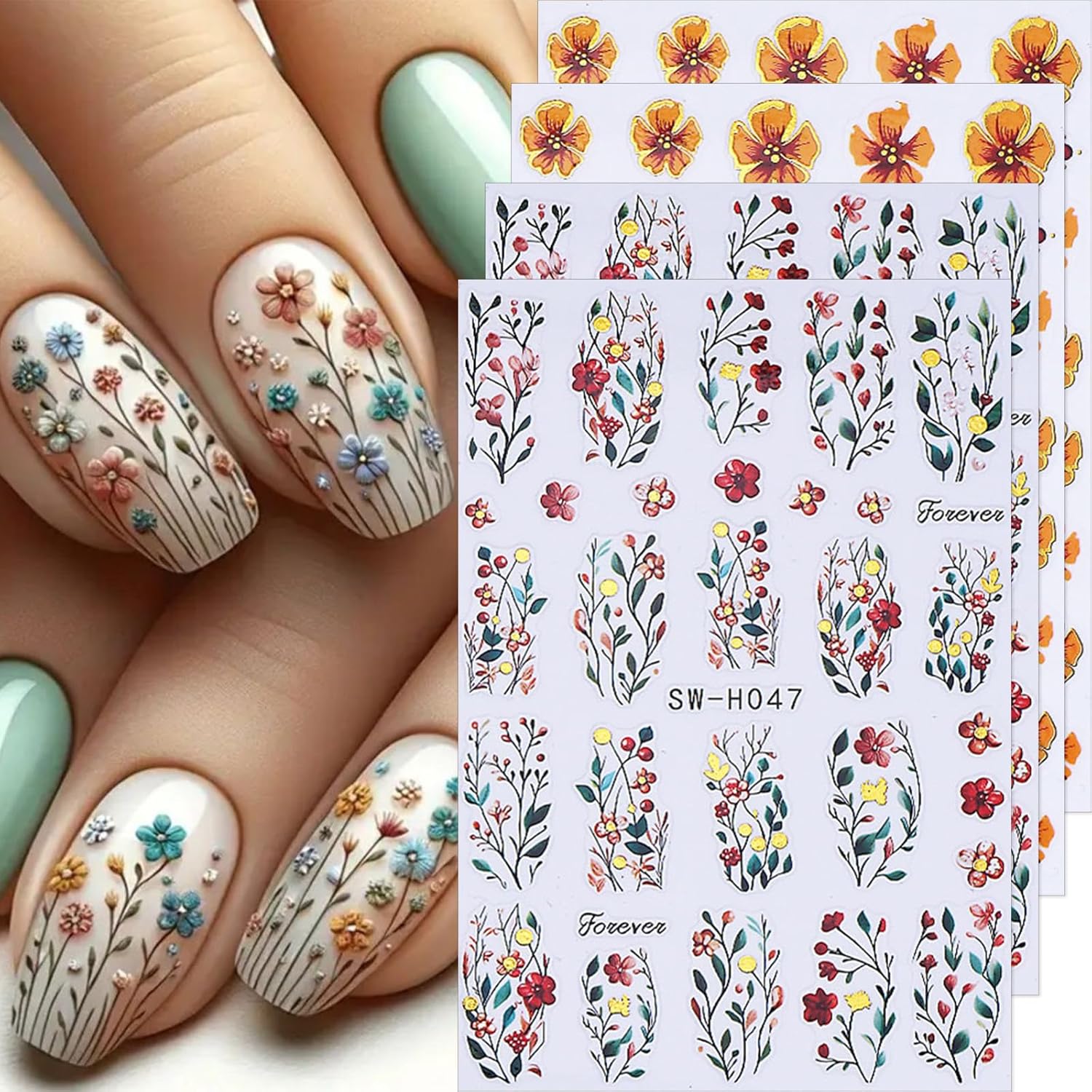 - Note: If you have any questions about these cute cartoon floral nail art decals, please reach out to us for assistance